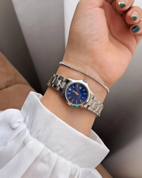 من که دلم رفت واسه صفحه آبی این ساعت از پرطرفدارترین و باکیفیت ترین ساعتامونه فوق العاده شیک و جذاب بند استیل،رنگ ثابت ضدحساسیت دارای تقویم فعال قفل پروانه ای ضد آب در حد دست شستن حک برند روی قفل و پشت ساعت هم به صورت تک هم ست میتونید سفارش بدید