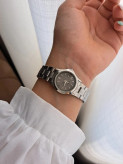 استایل روزمره با طعم کلاسیک! کا..سیو با ترکیب طوسی، مشکی و نقرهای، همزمان ساده و خاص. ساعتی که با همهچیز ست میشه! بند و قاب استیل،رنگ ثابت ضدحساسیت دارای تقویم فعال قفل پروانه ای