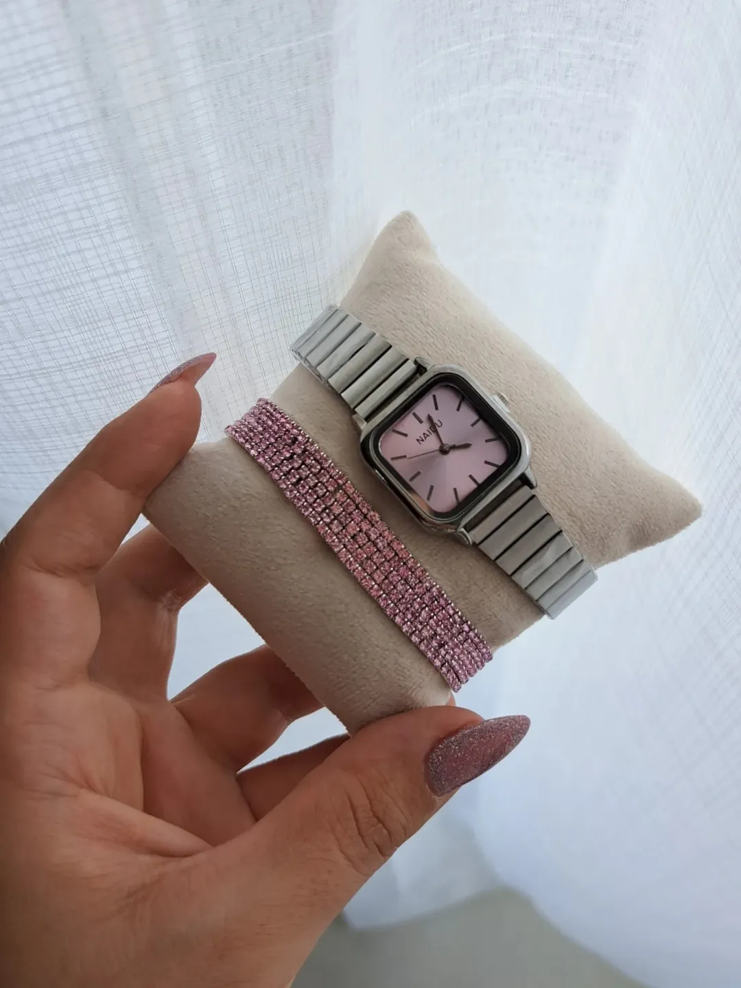 ساعت صفحه یاسی نایدو ضدآب در حد دست شستن قفل ریلی موتور کوارتز بند و بک استیل و رنگ ثابت