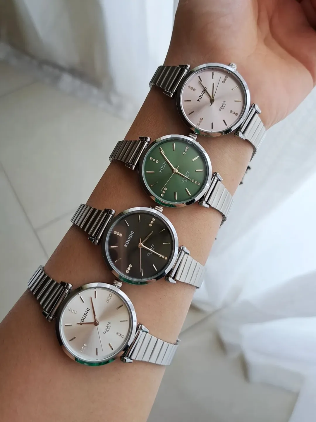 ساعت کوشی پرطرفدار اسلایدارو ورق بزن و جزئیاتشو ببین عاشق رنگ سبزش شدم خیلی خوشگله و خاصه بند استیل رنگ ثابت ضدحساسیت کلاسیک ضدآب درحد دست شستن قفل ریلی و قابل سایز کردن توسط خودتون موتور کوارتز