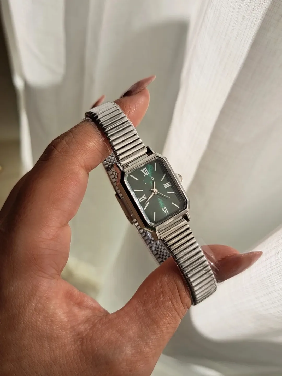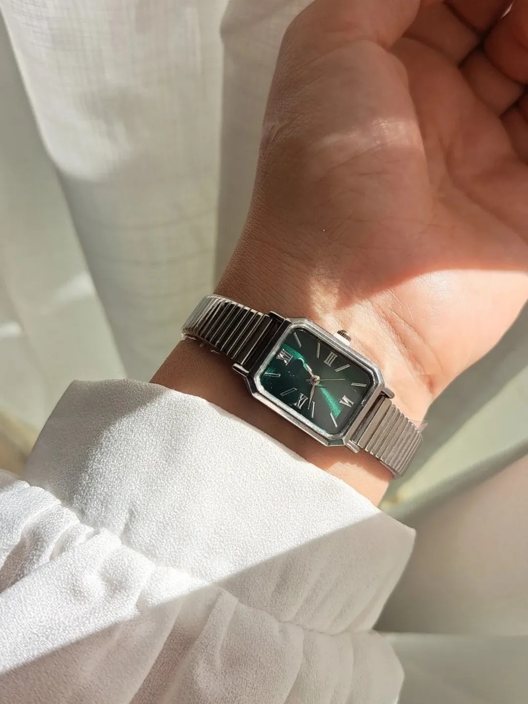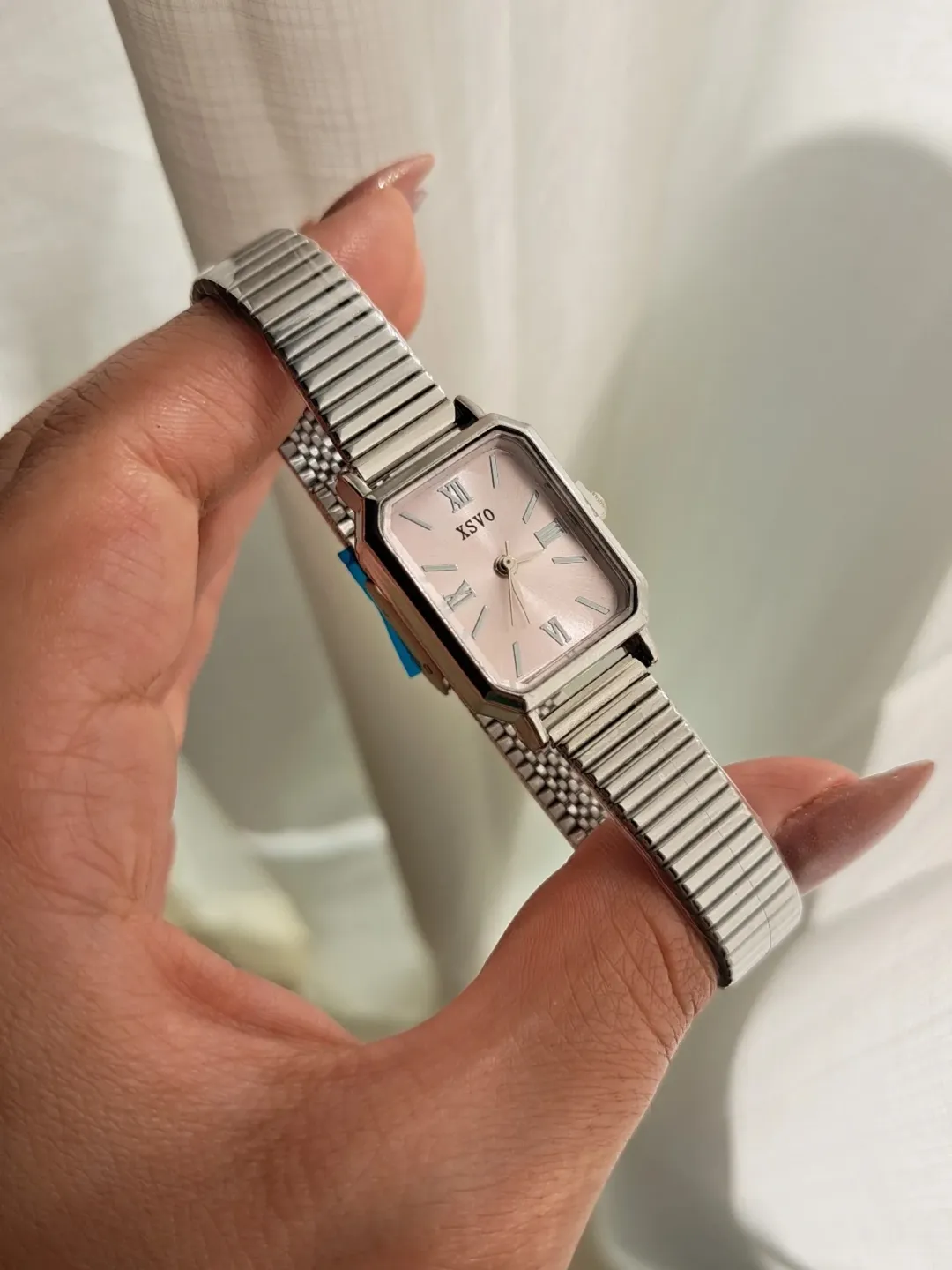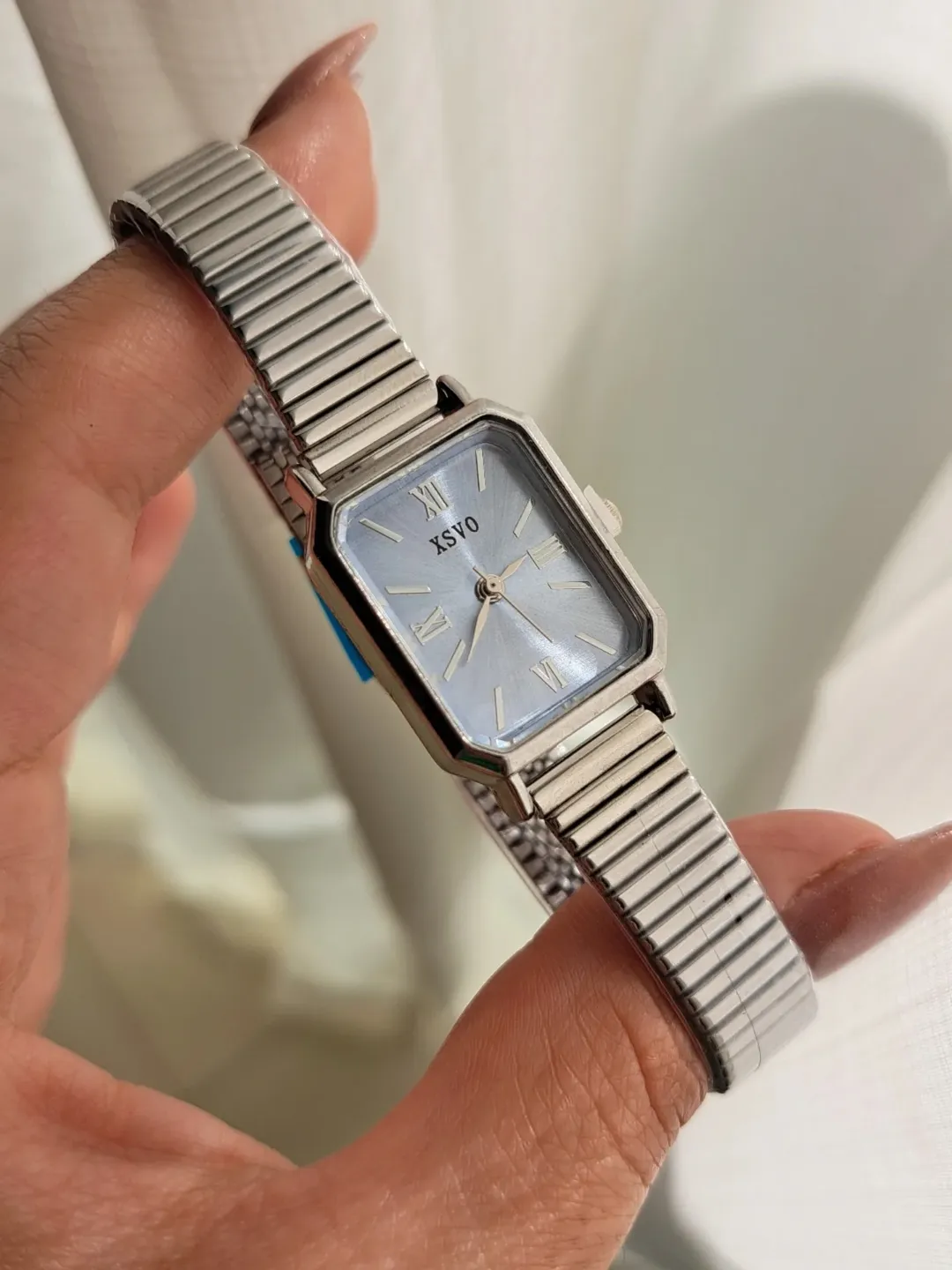 شارژ مجدد ساعت صفحه مستطیل ایکس وی ترکیب ظرافت و جسارت. برای اونهایی که خاص بودن رو انتخاب میکنن کیفیتش عالیه. بند و بک رنگ ثابت باطری قابل تعویض بند ریلی قابل سایز کردن.